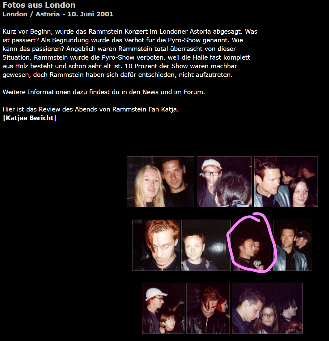 Many photos exist from this night online with various members. I see Till and Flake ones a lot too. Some Paul ones have gone MIA. I have versions of two of these but they are not the original resolutions or sources. The versions I have may be smaller than the original. Because if I told you how I salvaged them, you'd laugh. People on YouTube would make photo slideshows. I found numerous of these would contain missing images from 2005-2012 frozen inside them. I have been through like 200 Rammstein slideshows. So I'd download the video and take screenshots. Often times, these are resized to SD 4:3.
